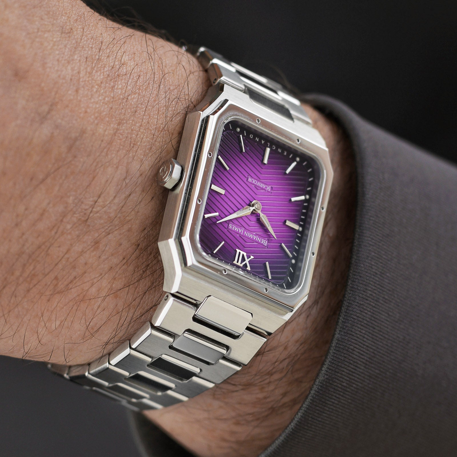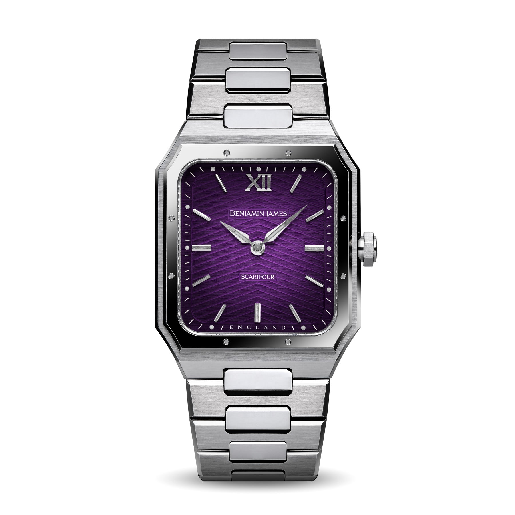 The Scarifour is named after our founders childhood ancestral home - and inspired by his Grandfathers passion for rectangular watches.