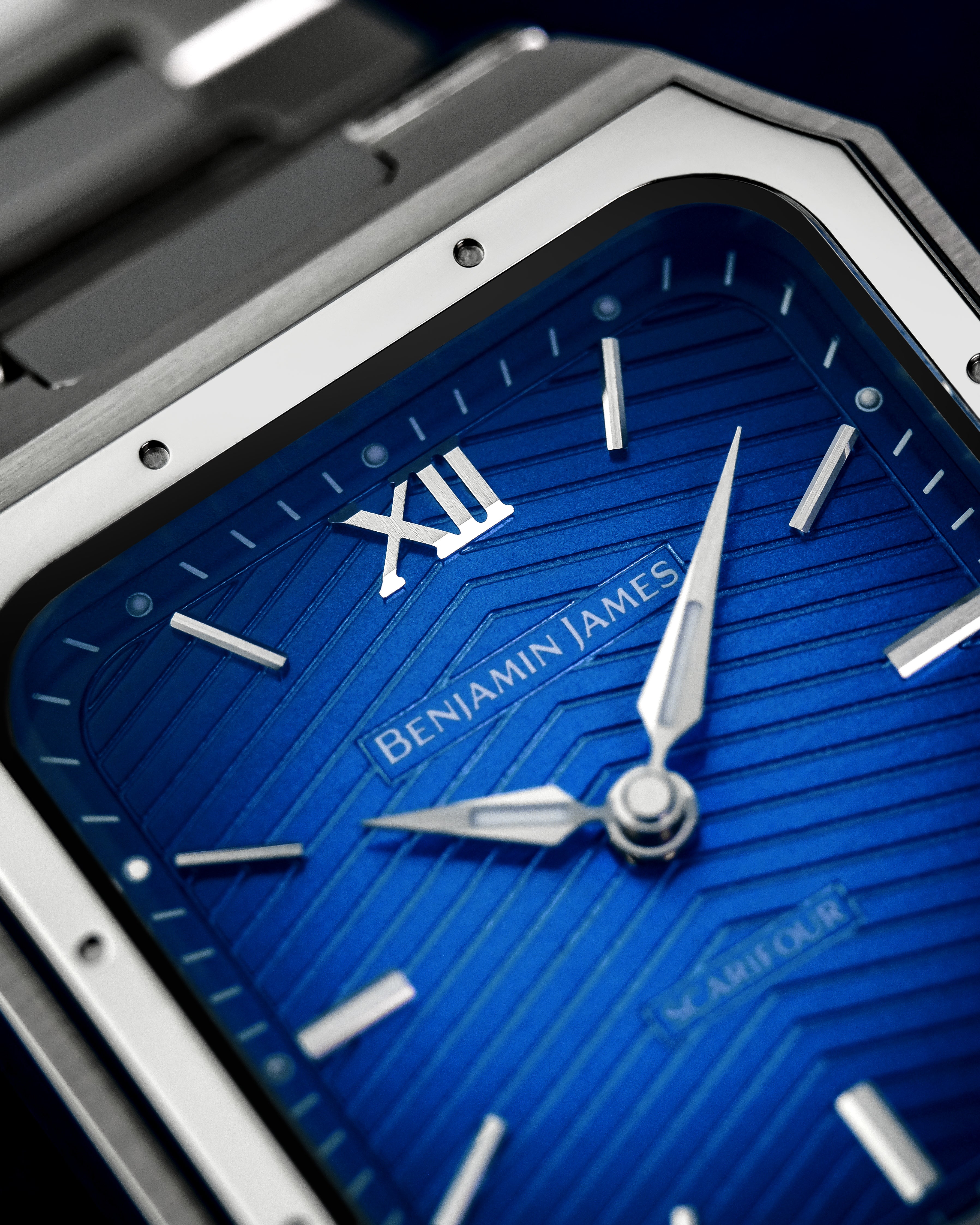 The Scarifour is named after our founders childhood ancestral home - and inspired by his Grandfathers passion for rectangular watches.